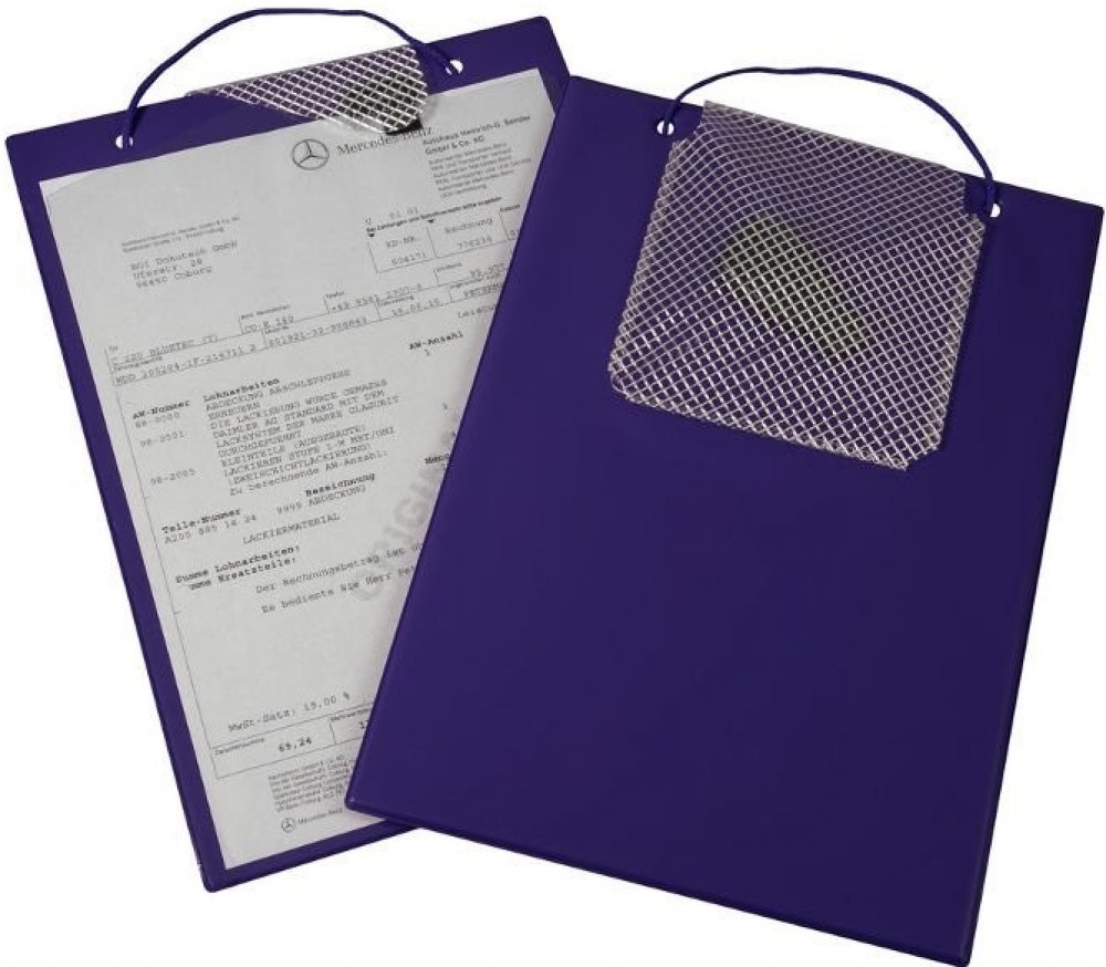 Desky na zakázkové dokumenty (A4) s průhlednou fólií, se suchým zipem, s poutkem a s kapsou na klíče.