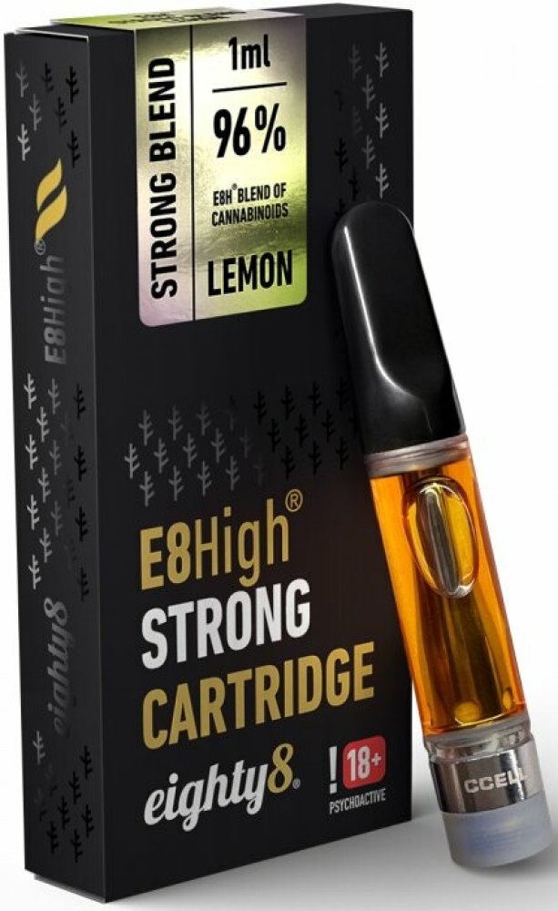 Citrón... Přednaplněná cartridge s 510 závitem o objemu 1ml od českého výrobce Eighty8. Unikátní směs plně legálních a hlavně bezpečných kanabinoidů sestavena pro maximální HIGH efekt, která je legální napříč celou Evropou. Od dob, co bylo zakázáno HHC, musíme říct, že E8High je blend kanabinoidů, na který všichni čekali.