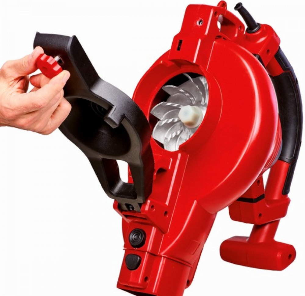 Široká sací trubice s maximální sací kapacitou 840 m³/h má oproti tomu dostatek místa a energie pro nasátí a tím i odstranění shromážděného materiálu. Příprava obou funkcí se provádí bez použití nářadí, a je tak snadná a rychlá. Díky integrované funkci drcení je materiál automaticky rozdrcen v poměru 15:1. V důsledku toho je nutno sběrný vak vyprazdňovat mnohém méně často a listí lze lépe kompostovat. Kolo ventilátoru vyrobené z hliníku je robustní a odolné. Prostřednictvím elektronické regulace otáček lze podle potřeby přesně dávkovat sací a foukací výkon. Při nižší rychlosti vzduchu lze snadno smést listí např. na skalkách, aniž by byl současně smeten jiný materiál. Pomocí vysoké rychlosti lze např. v krátkém čase zpracovat např. větší plochy.