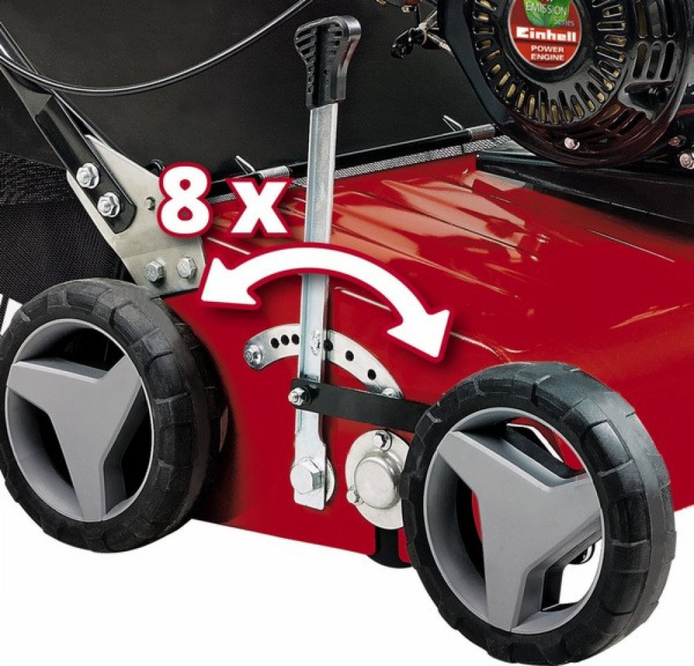 Benzínový vertikutátor na údržbu trávníku, výkon 4,2 kW, 8úrovňové nastavení hloubky, sběrný koš objemu 45 litrů, pro plochu do cca 1200 m2 – Einhell Classic GC-SC 4240 P