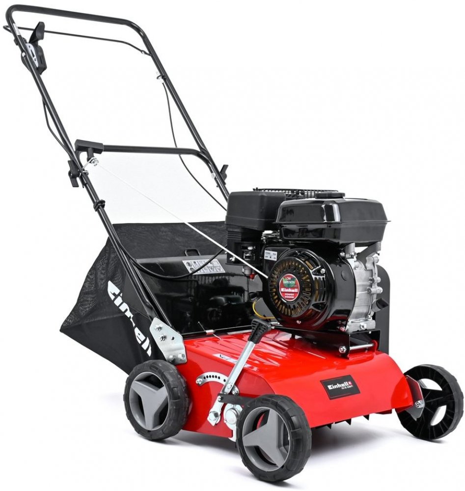 Benzínový vertikutátor na údržbu trávníku, výkon 4,2 kW, 8úrovňové nastavení hloubky, sběrný koš objemu 45 litrů, pro plochu do cca 1200 m2 – Einhell Class...