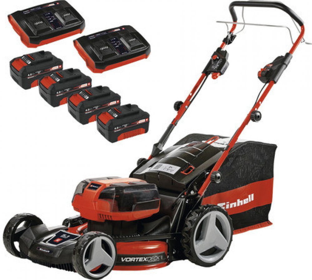 Nabíjecí baterie z řady Power X-Change lze použít v kterémkoli z produktů ze systémové řady Einhell. Pro rychlé nabíjení jsou součástí dodávky dvě systémové twinchargery (dvojitá nabíječka). Díky čtyřem dodaným bateriím a technologii Double Twin Pack je možné delší sečení bez dobíjení.