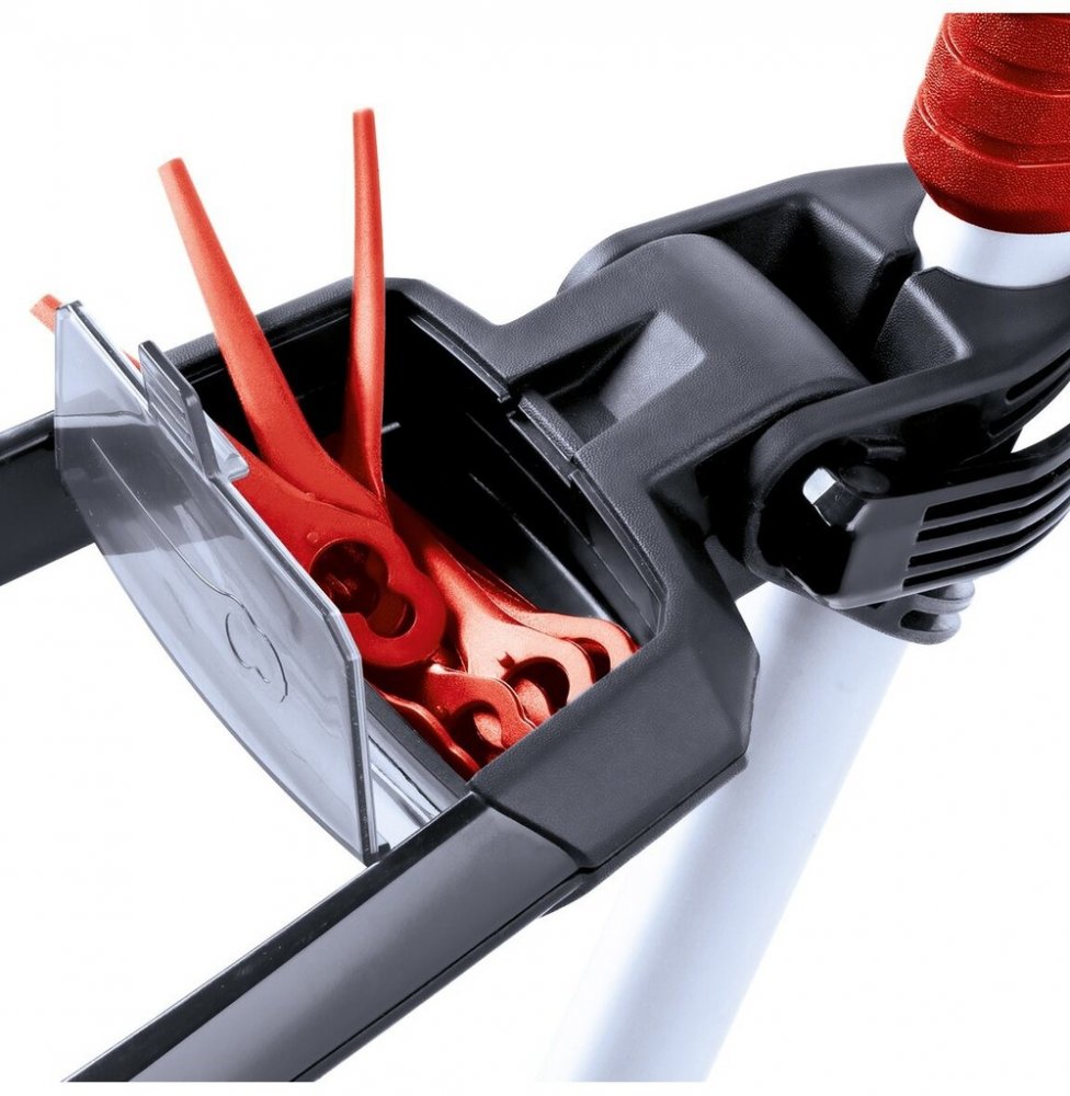 až na 20 náhradních nožů. Samotnou motorovou hlavu lze natočit i naklopit podle potřeby.