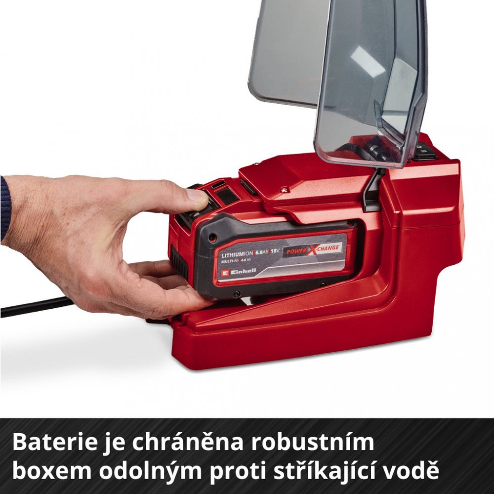 Akumulátorové čerpadlo na odpadní vodu Einhell GE-DP 18/25 LL Li-Solo je všestranné čerpadlo na čistou i odpadní vodu. Výkonný přístroj je součástí rodiny Einhell Power X-Change, kde lze flexibilně kombinovat všechny baterie, systémová zařízení a nabíječky. Díky baterii lze čerpadlo odpadní vody používat flexibilně bez ohledu na připojení k elektrické síti. Baterie je chráněna robustním bateriovým boxem odolným proti stříkající vodě a lze ji zavěsit na stěny, dešťové sudy, ploty apod. díky nástěnnému držáku a upevňovacím háčkům. Držák kabelu pro 5 metrů dlouhý propojovací kabel, který umožňuje ponoření pumpy až do hloubky 4 metrů, je integrován do bateriového boxu. 160 W motor umožňuje čerpadlu dodat až 7 000 litrů za hodinu při maximálním tlaku 0,5 baru. Ponorné čerpadlo má dvě úrovně výkonu: Režim ECO zajišťuje delší provozní dobu s nižší spotřebou baterie, zatímco režim BOOST poskytuje maximální výkon. Díky otočnému dnu pouzdra je akumulátorové čerpadlo vhodné jak pro odpadní vodu s maximálním průměrem nečistot 25 mm, tak pro čistou vodu (zrnitost 1 mm). Čistá voda může být odčerpána plochým sacím čerpadlem až do hladiny zbytkové vody 1 mm. Při spouštění čerpadla musí být hladina vody alespoň 10 mm. Oboustranná rukojeť usnadňuje přepravu 3,3 kg zařízení. Čerpadlo je vybaveno tlakovou přípojkou 42 mm (1 1/4" AG) a je dodáváno s univerzálním adaptérem pro hadice 25/32 mm s 1" AG (33,3 mm). Akumulátorové čerpadlo na odpadní vodu GE-DP 18/25 LL Li-Solo se dodává bez baterie a nabíječky. Tyto jsou k dispozici samostatně.