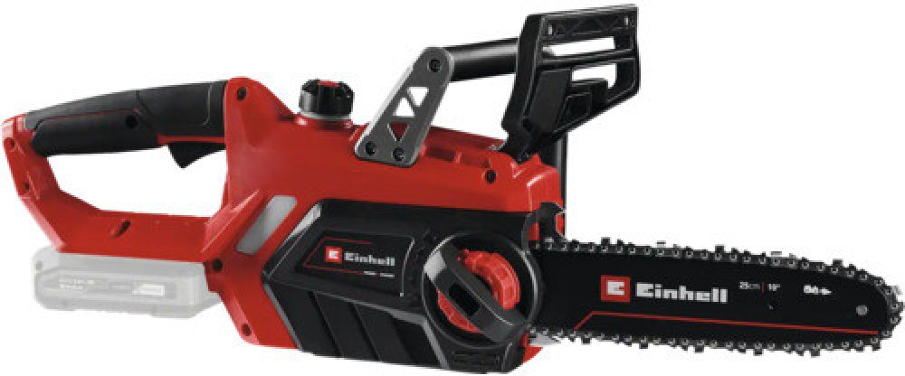 S lištou o délce 25 cm si pila poradí i s většími kusy dřeva. Napájení je zajištěno pomocí 18V systémových akumulátorů značky Einhell. Vhodné akumulátory s kapacitou 2 Ah a 4 Ah a příslušná nabíječka je rovněž součástí nabídky obchodu HORNBACH. Dohromady s 2Ah akumulátorem váží pila pouhých 3,4 kg.