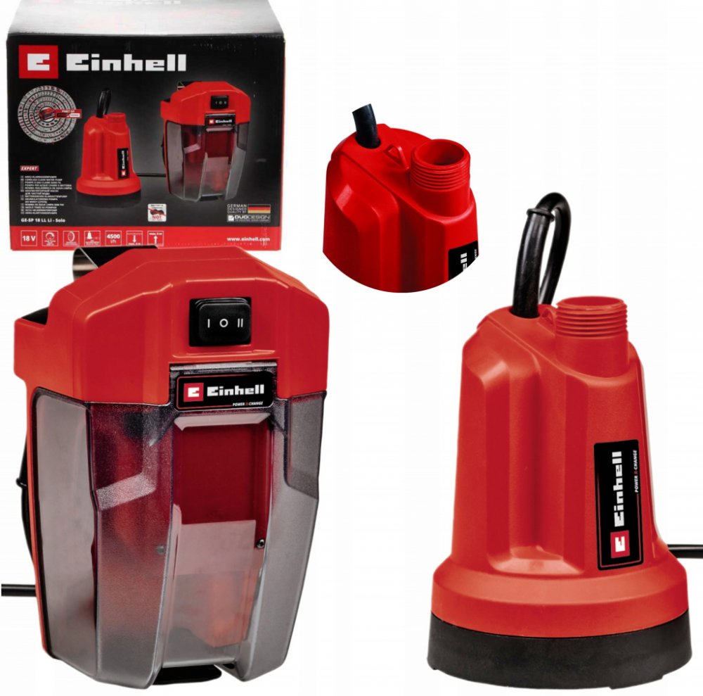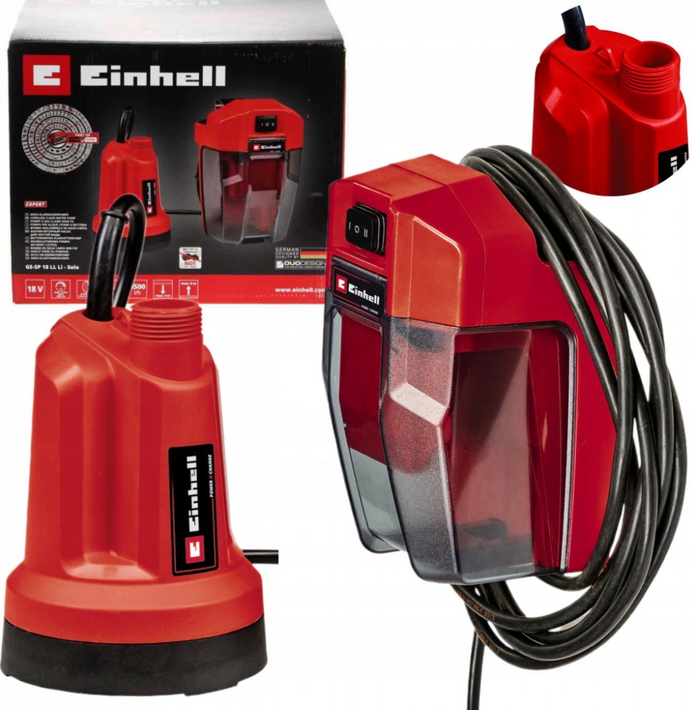 Sháníte čerpadlo na vodu pro odčerpání špinavé vody? Je vhodné použít Einhell Aku čerpadlo GE-SP 18 LL Li-Solo o hodinovém čerpacím výkonu 4500 l/h. Zahradní pumpa je určena k práci s užitkovou, nikoli pitnou vodou. S tímto zahradním čerpadlem odčerpáte vodu až do výšky 8 m. Teče vám při bouřkách voda do sklepa? Tento praktický pomocník vám s tím pomůže. Rozhodující přednosti čerpadla na vodu Einhell Aku čerpadlo GE-SP 18 LL Li-Solo Odčerpá vodu ze sklepa až do vzdálenosti 8 m Využijete na chatě, ve sklepě ale i jako součást závlahového systému či na zahradě Maximální tlak až 0,8 bar