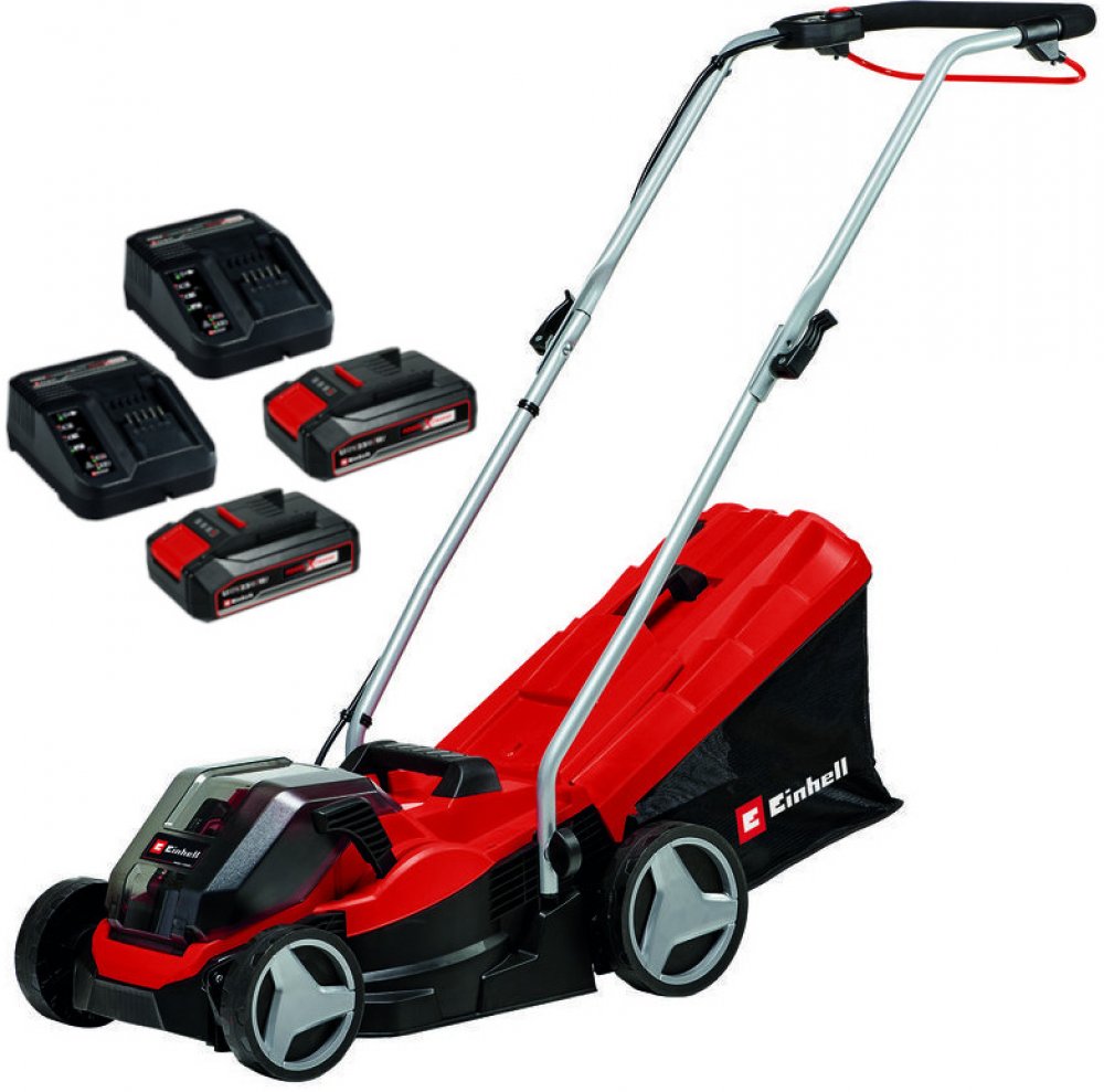 Einhell 33 cm plastové 15.27 kg bez pojezdu akumulátorové rotační 30 l 250 m2 36 V 2.5 Ah elektromotor 65 mm 5 s plastovo-látkovým košem