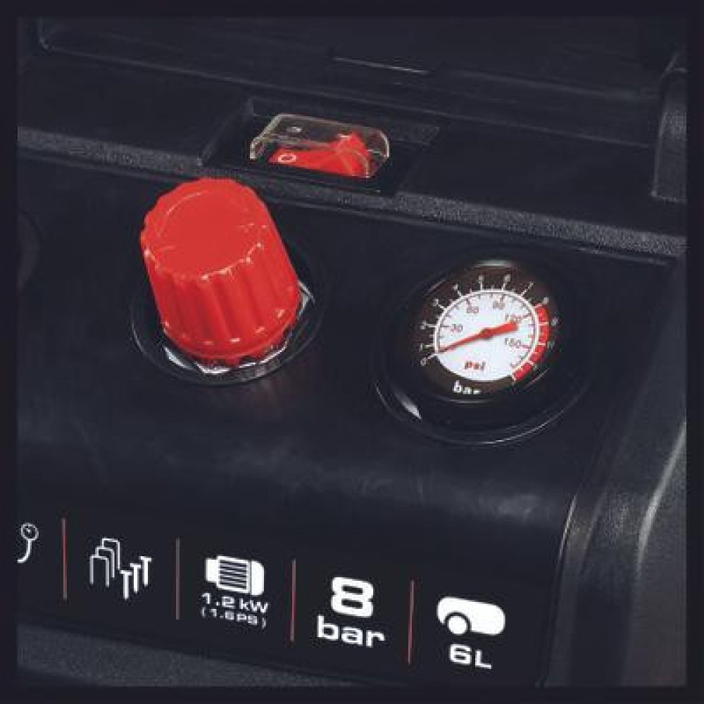 Kompresor Einhell TC-AC 190/6/8 OF Set je skutečně všestranným pomocníkem pro širokou škálu úkolů v domácnosti, dílně i garáži. Se správným nářadím lze kompresor použít k mnoha účelům: od lakování a mazání až po vyfukování a čištění. Pneumatiky, míče a matrace se během okamžiku naplní vzduchem. Bezolejový a bezúdržbový motor nevyžaduje velkou údržbu. Mobilní kompresor je vybaven šestilitrovou nádrží na stlačený vzduch, která umožňuje dlouhodobou práci. Praktické je navíjení kabelu na zadní straně krytu. V krytu je integrován háček a úložný prostor pro příslušenství. Díky redukčnímu ventilu, který lze nastavit až na 8 barů, zvládne kompresor širokou škálu aplikací. K dispozici je manometr a rychlospojka pro regulovaný pracovní tlak. Nožičky zajišťují bezpečný stoj během provozu. Bezpečnost uživatele zajišťuje bezpečnostní ventil. Vypouštěcí šroub umožňuje pohodlnou údržbu. Součástí vybavení je adaptér pro použití jako foukací pistole, nafukovačka pneumatik, pětimetrová spirálová hadice a osm různých adaptérů (např. pro míče, pneumatiky a vzduchové matrace). Společnost Einhell poskytuje desetiletou záruku na prorezavění kotle.