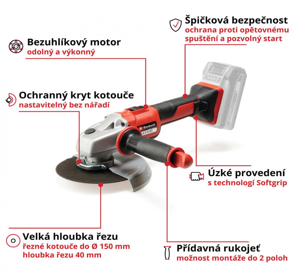 150 mm 8500 ot/min Einhell úhlové 700 W 18 V hobby akumulátorové pro silné odstranění materiálu pro mobilní úlohy bezkartáčový s nízkými vibracemi a hlučností