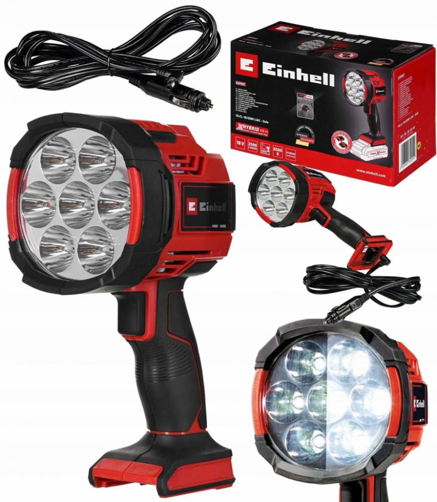 Akumulátorová svítilna Einhell TE-CL 18/2500 LiAC - Solo s 2 500 lm skutečně udělá ze tmy den. Jako člen rodiny Power-X-Change lze v kombinaci se svítilnou používat všechny dobíjecí baterie ze systémové rodiny. Praktická akumulátorová svítilna se hodí nejen do špatně osvětlených prostor, jako jsou sklepy, staveniště, půdní vestavby nebo tmavé kouty v dílně. Pro úplný přehled o všem se akumulátorová svítilna hodí při výpadcích proudu nebo na dovolené v kempu, nočních túrách, procházkách po západu slunce a při dalších outdoorových aktivitách, kdykoli se bez zdroje světla mimo síť opravdu neobejdete. Díky sedmi trvanlivým, jasným LED diodám s celkovým světelným tokem 2 500 lm a barevnou teplotou 6 500 K je akumulátorová svítilna nejen jasnější, je také robustnější a odolnější vůči nárazům než srovnatelná halogenová žárovka. Dvě úrovně jasu poskytují ideální osvětlení a je zde 1/4" závit, který umožňuje její upevnění na stativ. Pro snadnou manipulaci a flexibilitu při použití má svítilna tenký design s nízkou hmotností a má ergonomickou rukojeť s měkkým úchopem. Tento produkt se dodává bez baterie a nabíječky ze série Power X-Change, které jsou k dispozici samostatně, např. jako praktická startovací sada s různými kapacitami.