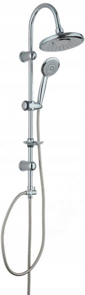 Sprchový set včetně termostatické baterie s roztečí 150 mm -letní déšť Sprchový set , obsahuje sprchovou baterii, ruční sprchu a horní sprchu. Výška setu je 102 cm, vzdálenost výtoku horní sprchy od zdi je 245 mm. Kovové tělo s povrchovou úpravou chrom Hlavová sprcha průměru 21 cm Hadice ke sprše délka 1,5 m Přepínací ventil mezi horní sprchou a ruční sprchou. 7-polohová ruční sprcha Držák ruční...