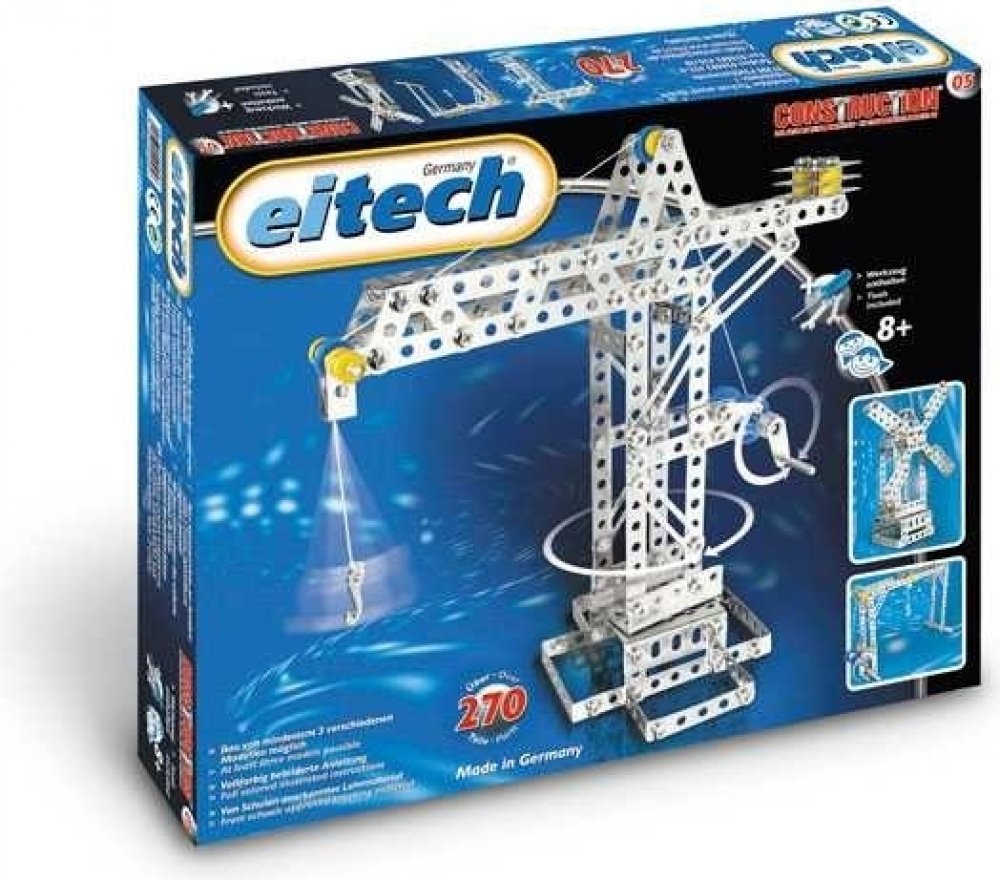 S konstrukční stavebnicí Eitech děti hravě objevují svět techniky. Malí i velcí tak mohou stavět modely aut, jeřábů, letadel a mnohých dalších strojů. Jednotlivé sady se vzájemně doplňují a lze je kombinovat. Konstrukční stavebnice C05 (25-4051). Obsahuje přes 270 dílků. Nářadí je součástí sady. Obsahuje ilustrovaný návod na složení 3 modelů. Kompatibilní s dalšími sadami Eitech. Vhodné doplnit o sadu C131. Doporučena pomoc dospělého.
