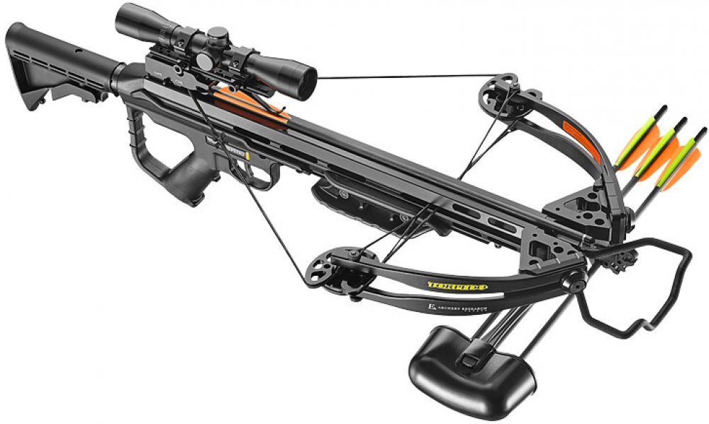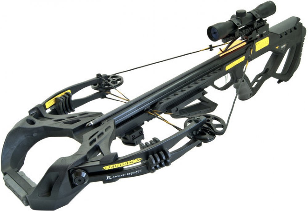 Sportovní kladková kuše určená pro lovení a sport, je vysoce přesná a výkonná kuše s HI-Tech použitým materiálem. Inovovaný kladkový systém, duralové tělo, ramena ze sklolaminátu, tvarované podpažbí pro stabilní úchop, pogumovaný grip a patka - ergonomická rukojeť, gumová lícnice, weaver lišta 22 mm na optiku a také na spodní části těla pro svítidla a jiné, pojistka proti výstřelu naprázdno, kušohľad 4 x 32, nášlap nátahu jako základna zbraně na níž jsou upevněny ramena trochu vyčnívá z běžného tvaru kuší.Tato kuše je velmi silnou účinnou zbraní, jedna z nejsilnějších na trhu vůbec, ví prostřelit dveře auta, proto doporučujeme zvýšenou opatrnost při manipulaci. Cena je v poměru o polovinu nižší než u značek Tenpoint, Barnett, kvalitní provedení od popředního výrobce kuši a luků Ek-Archery.POZOR! Kuší se nesmí střílet naprázdno!Soubor ke stažení:Návod k obsluze a bezpečnostní pokyny (SK)Kuše Guillotine X 185 Lbs černáKušohlad 4 x 32 - Grátis v baleníŠípy karbonové 20" - 3 ksRamenní popruhNapínákToulec na šípyMazivo na kolejniciNávod se záručním listemDélka kuše: 890 mmŠířka kuše: 530 mmNapínací síla: 185 LbsDélka šípu: max. 20" - 520 mmRychlost vystřeleného šípu: 400 Fps (cca 122 m/s)Materiál Těla: DuralRamena: High-Tech sklolaminát za tepla lisovaný, spec.slitinaWeaver lišta: 22 mmPažba: měkčené ABSBarva: černáMířený dostřel s přesností: 70 - 120 mDostřel: 370 mNapínací síla: 185 lbs - 84 kgHmotnost: 4,45 kg