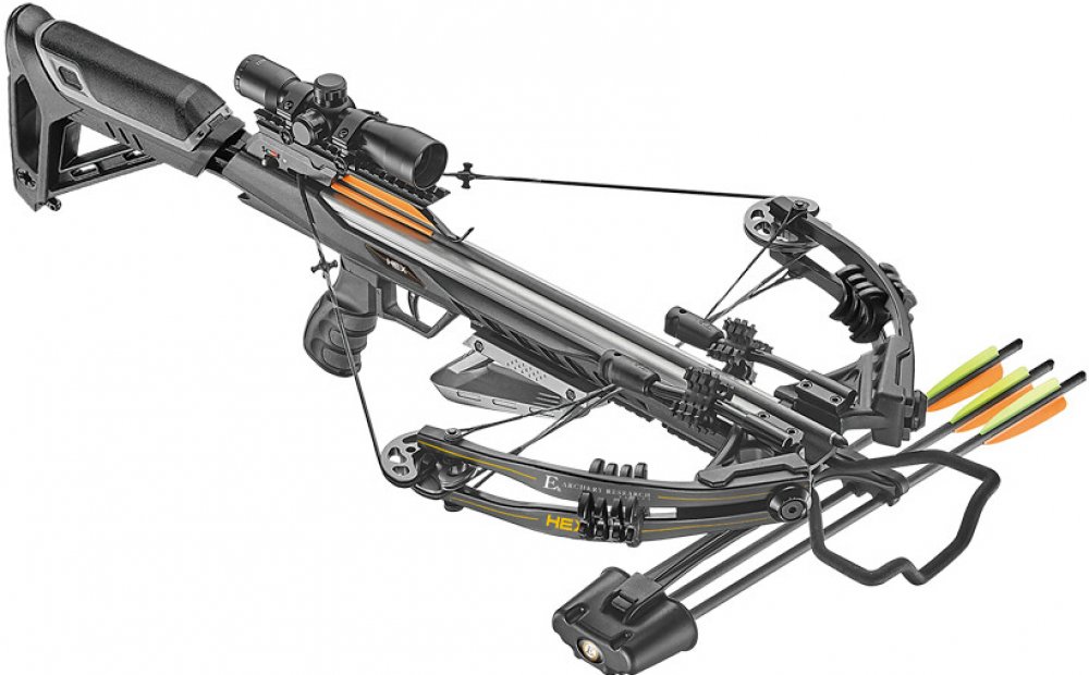 Kuše Ek-Archery HEX 400Sportovní, kladková lovecká kuše z dílny Ek-Archery, určená do rukou náročných a zkušených střelců. Tento model se vyznačuje svou silou a kompaktní velikostí. Rychlost šípu je až do 400 Fps (121.92 m / s). Délka kuše bez vysunuté pažby je jen 85.09 cm (33.5 "), střelec tak má mnohem lepší obratnost. Výrobce uložil spoušť blíže k ramenům pro získání kompaktního tvaru kuše s t...
