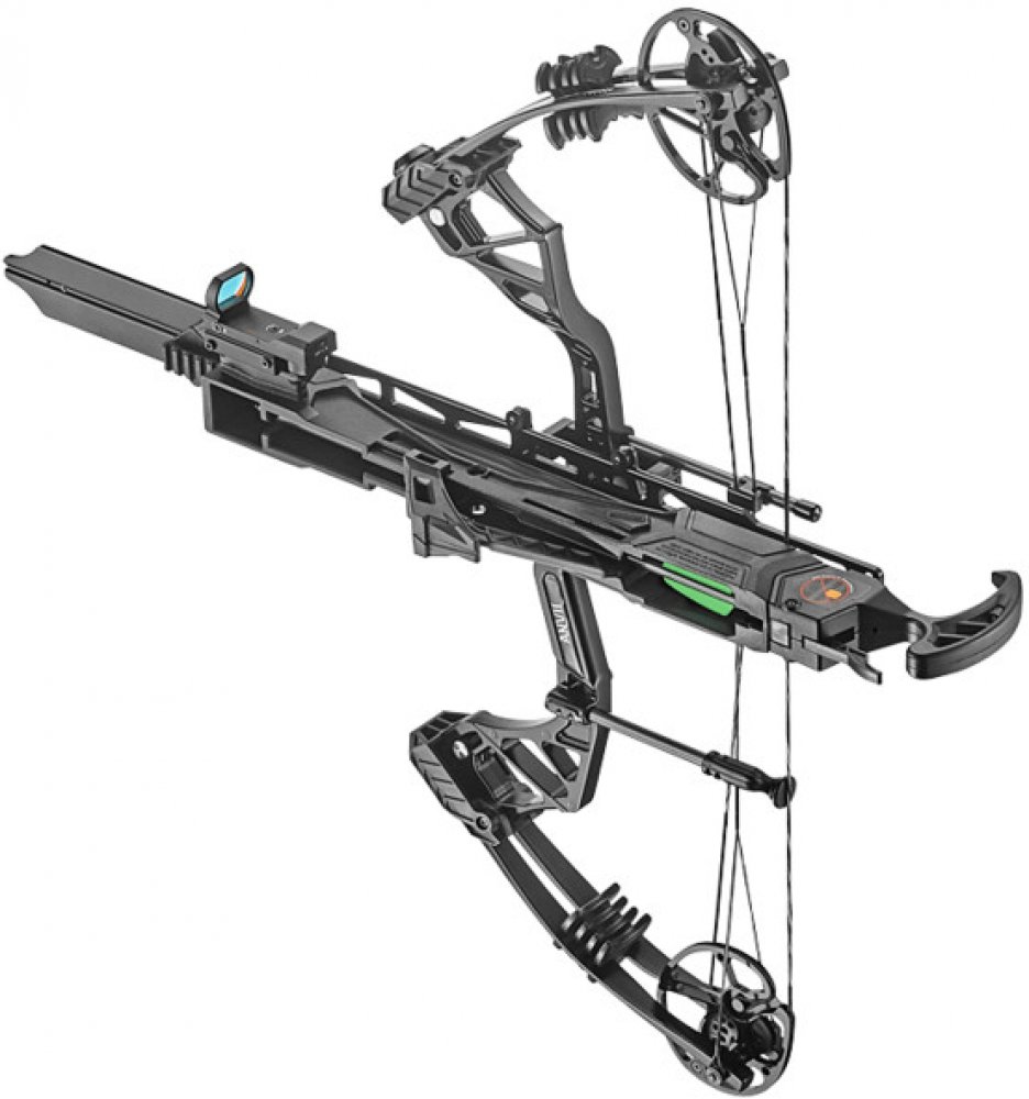 Revoluční design luku Whipshot se zásobníkem na 6 šípů změní v okamžiku průměrného lukostřelce na extrémně rychlého střelce s bohatými zkušenostmi. Whipshot je nadčasová opakovací mechanická zbraň složená z kladkového luku a podávacího zásobníku. Jakmile uchopíte Whipshot do rukou, musíte změnit orientaci se zbraní. Integrovaný dlaňový vypouštěč pohybuje celým zásobníkem a automaticky přebíjí šípy při napínání luku. Vaše míření se soustřeďuje na optiku kolimátoru, který je uložen na konci zásobníku. Při míření se hlava nenaklání za tětivu na pravou stranu, jak je zvykem, ale zůstává jemně skloněná jako při střelbě z pušky. Takto umíte lépe střílet na krátké a rychlé cíle. Při míření z kladkových luků musíte být vystřeni a v jedné obvykle stejné lukostřelecké poloze. U Whipshotu zapomeňte na konvenční postoje. Tento luk Vás vyvede z rutiny, míření je podobné střelbě z dlouhé palné zbraně. Design s měřidly umožňuje volnější pohyb. Držení luku, pohyb zásobníku s integrovaným vypouštěčem a celý cyklus střelby a výstřelu je návykový. Uložení ovládacích prvků je extrémně intuitivní. Na přední straně je druhá Picatinny lišta například pro laser, nebo svítilnu. Luk má duralovou spojnici, kompaktní rozměry a napínací sílu od 15 - 50 liber. Pro správné fungování se zásobníkem Whipshot je možné si upravit napínací sílu luku Anvil, a to minimálně od 16 liber. Délku nátahu umíte nastavit na nabízené minimum nebo maximum od 22“ až po 28“. Po vystřelení posledního šípu neumíte znovu napnout luk. Přítlačník šípů slouží jako pojistka proti napnutí bez šípu a tím znemožňuje výstřel na prázdno, současně indikuje prázdný zásobník jemným odporem a zabržděním přebíjení.Při maximálním nastavení je výkon luku 245 Fps – 74,7 m/s. Do zásobníku pasují jen speciální Whipshot karbonové šípy o délce 15“. Celková délka zásobníku je 80 cm. Let off (pokles síly nátahu) je 70 %. Výška luku je 29,9“ - 75,95 cm. Anvil luk má duralovou spojnici a slolaminátová ramena. Tlumiče ramen a tětivy. Zásobník má duralovou kolejnici a tělo z lehkého plastu. Celý komplet luku se zásobníkem váží pouhých 3 kg. Je v elegantní černé barvě.V balení tohoto produktu naleznete komplet vše pro zahájení střelby: Luk Anvil, zásobník Whipshot, karbonové šípy 15“ – 6 x, duralový kolimátor, konzola zásobníku a přítlačník šípů.Před prvním použitím důkladně navoskujte tětivu a kabely. Věnujte dostatečnou pozornost tomuto úkonu, pokud tětivu a kabely nenavoskujete dostatečnou vrstvou vosku před prvním použitím, za krátký čas se Vám začne tětiva trhat. Tětiva a kabely podléhají vysoké zátěži a přirozenému opotřebení, jde o spotřební materiál na který se nevztahuje záruka. Také je vhodné občas aplikovat kvalitní olej na ose kladek a do spoušťového mechanismu.POZOR! Lukem se nesmí střílet naprázdno!Luk kladkový Ek-Archery Whipshot 15 - 50 lbs se zásobníkem na 6 šípůKarbonové šípy Whipshot 15" - 6 xDuralový kolimátorKonzola zásobníkuPřítlačník šípůTlumič tětivyNávod se záručním listemNapínací síla: 15 - 50 LbsKapacita zásobníku: 6 šípůDélka nátahu: 22" – 28"Výkon: Max. 245 Fps – 74,7 m/sTyp luku: kladkový, opakovacíVýška luku: 29,9" - 75,95 cmCelková délka zásobníku: 80 cmMateriál zásobníku: odlehčený plast, kovMateriál luku: dural, sklolaminátCelková Hmotnost: 3 kg (luk + zásobník)Speciální Whipshot karbonové šípy 15"Provedení: pro pravákaLet off: 70 %Barva: černáVýrobce: Ek-Archery