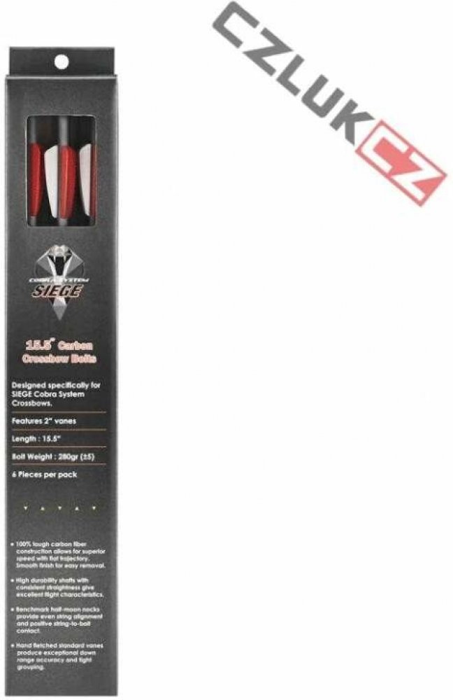 6 ks šípů navržených speciálně pro kuši Cobra System Siege. Délka Šípu 395 mm, tři křidélka, jedno barevně odlišené, které se zakládá do vodící lišty kuše.