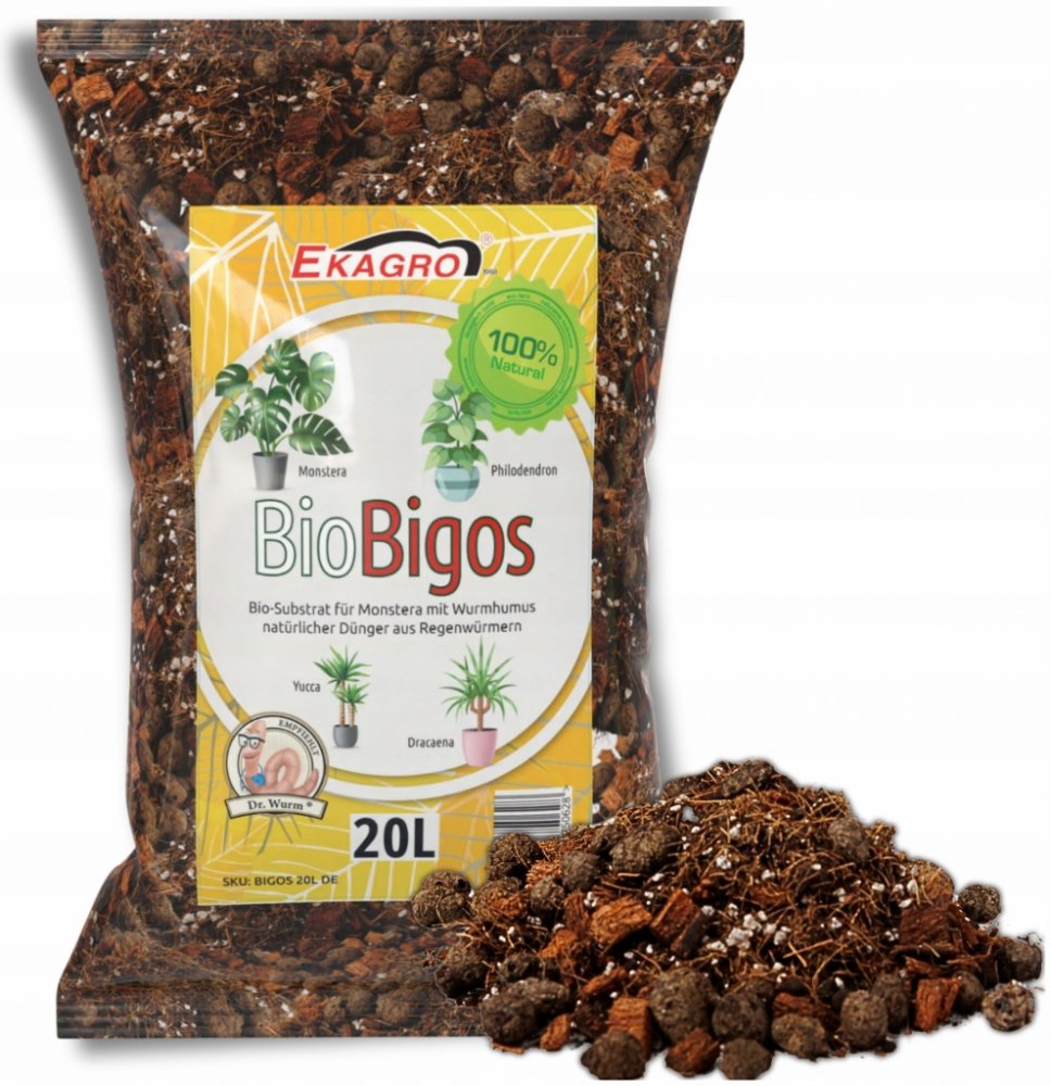 Podklad pro květiny Monstera 20L Juka Bio Bigos Lehký Univerzální✨ Substrát Bigos 20L Lehká Země PREMIUM pro květináče s biohumusem4.97/5.00⭐⭐⭐⭐⭐