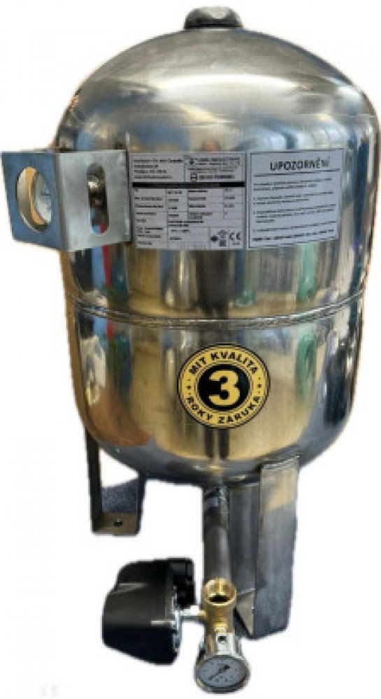 Popis tlakových nádob s vakemKvalitní tlaková nádoba vyrobená dle směrnice PED 97/23/ES, vhodná pro použití k automatickým domácím vodárnám, k zásobování objektů užitkovou vodou, v systémech pro zvyšování tlaku, v zavlažovacích systémech, v požárních systémech nebo pro vyrovnání tlaku.Konstrukce nádob s vakem Plášť nádoby je svařen z částí vyrobených z nerezového plechu AISI 304. Uvnitř tlakové ná...