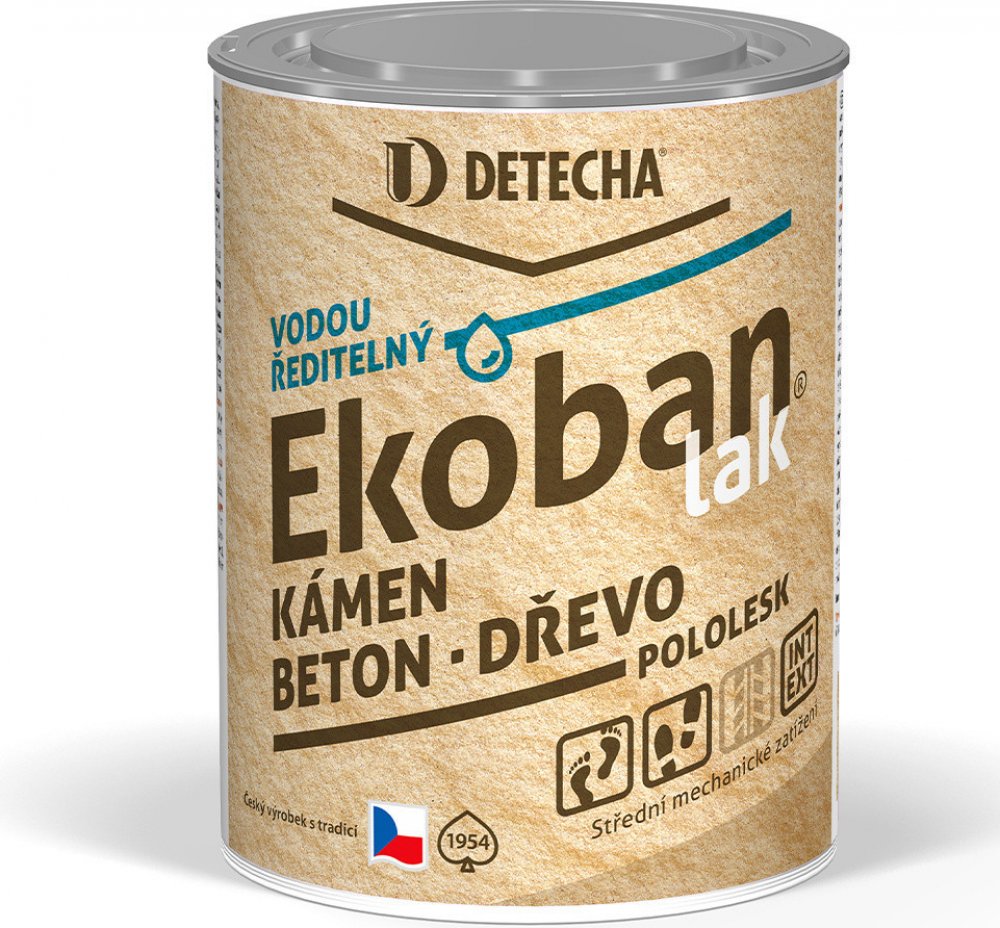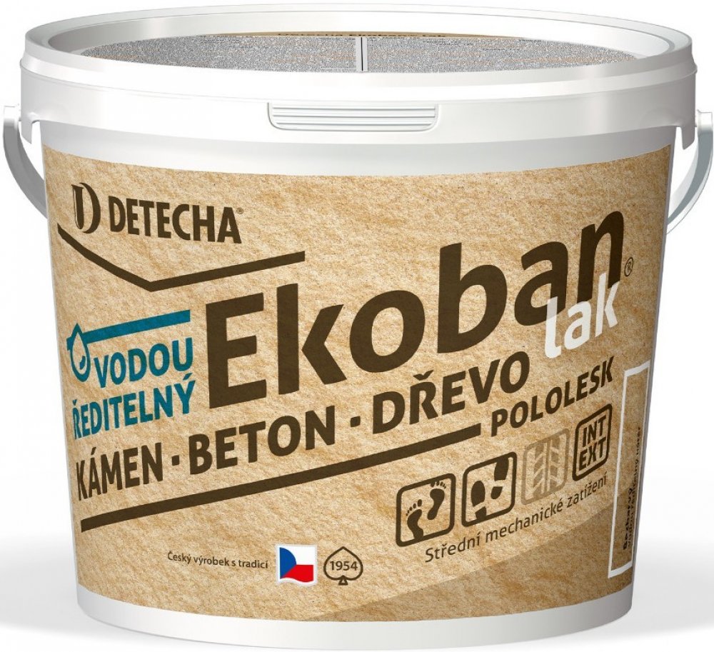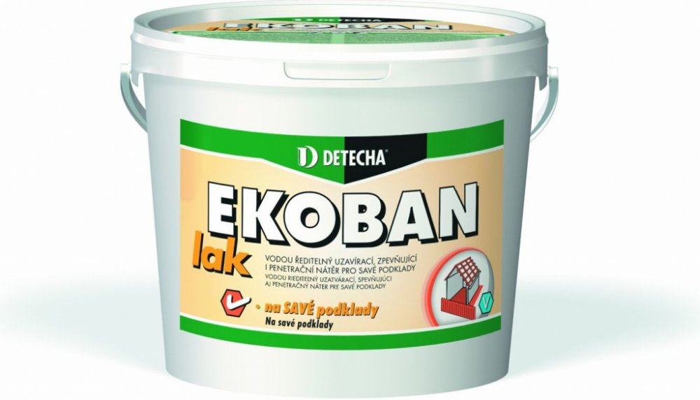 Lak na beton, dřevo, kámen, zdivo a další savé podklady. Ekoban Lak penetruje, zpevňuje a uzavírá natíraný podklad. Zvyšuje mechanickou odolnost, chrání proti vodě a před nepříznivými povětrnostními vlivy. Zlepšuje kvalitu a usnadňuje čistitelnost předchozích nátěrů provedených disperzními barvami (např. Ekoban, Ekoban Forte apod.)