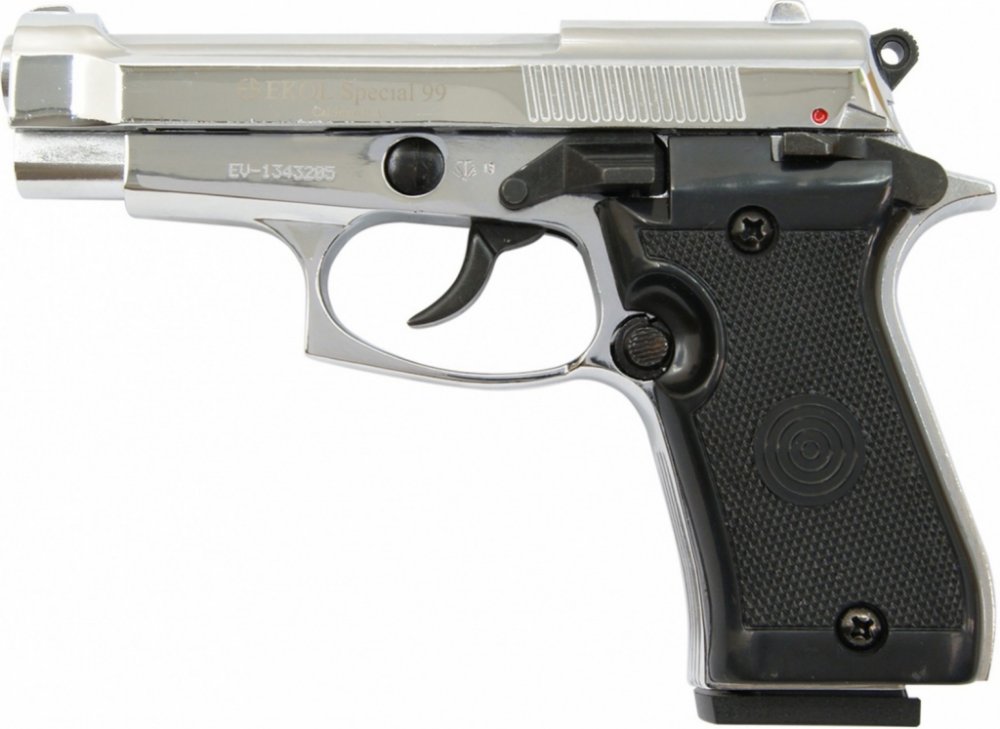 Plynová pistole Ekol Special 99 Classic cal.9mm kat. PO chromPoloautomatická expanzní zbraň Special 99 Classic tureckého výrobce EKOL VOLTRAN je replikou velmi známé italské pistole Beretta 85. Pistole není ani příliš velká, ale ani příliš malá, díky tomu je pohodlná při nošení a dobře sedí v dlani, přitom stále vyvolává dojem ostré zbraně.Celokovová konstrukce s pochromovanou lesklou povrchovou ú...
