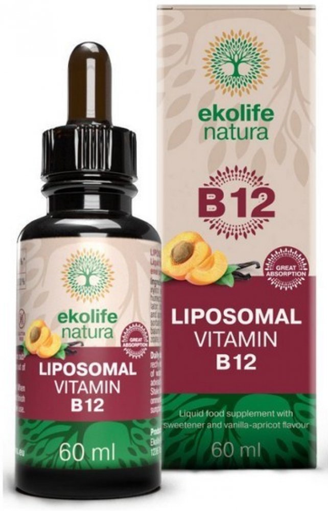Vitamín B12 zvaný také kobalamin je ve vodě rozpustný vitamín, jehož vlastnosti souvisejí s metabolismem všech tělesných buněk. Jeho molekula je největší a strukturálně nejkomplikovanější ze všech vitamínů. Ekolife Natura Liposomal Vitamin B12 je vyprodukován šetrnou fermentační technologií a to ve své bioaktivní formě hydroxykobalaminu, který je pro tělo snadno vstřebatelný a přirozený. Odhaduje se, že zhruba polovina populace má nedostatečnou hladinu B12 v krvi. Není to však způsobeno malým příjmem ze stravy, ale nemožnosti vitamín B12 vstřebat. Z různých příčin – např. v příliš kyselém prostředí žaludku je nedostatečně přítomný tzv. vnitřní faktor, glykoprotein, na který se vitamín B12 váže, a který je k jeho absorpci nezbytný.