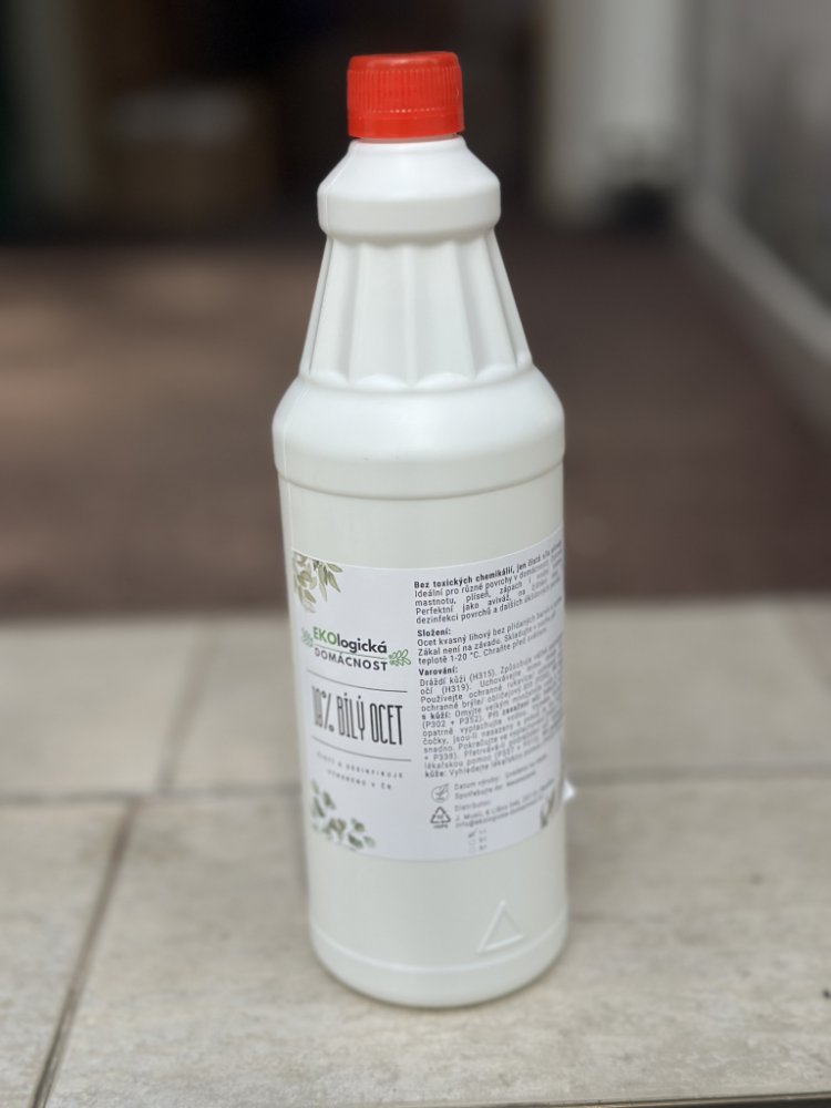 Ocet lze použít i k ekologickému čištění, odstraňování vodního kamene, k dezinfekci povrchů atd. Bílý ocet je čistý, neochucený, bez přidaných barviv a aromatických látek. Pro snadnější manipulaci můžete doplnit láhev o rozprašovač.