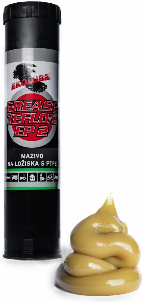 Je vyrobeno na bázi hluboce rafinovaného minerálního oleje. Jako zpevňovadlo je použito krátkovláknité lithné mýdlo. Mazivo obsahuje přísady vysokotlaké, proti korozi a rezivění a bílá tuhá maziva s výraznou schopností zlepšení kluzných a nouzových vlastností - PTFE-Teflon®. Tepelný rozsah použitelnosti trvale -30°C až +120°C, s domazáváním nebo krátkodobě +140°C. Použití: EKOLUBE Grease Teflon EP...