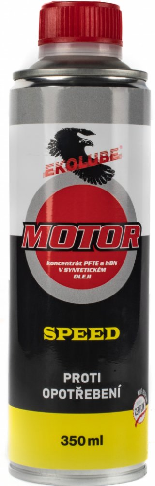 Speciální koncentrát na bázi stabilizované disperze bílých tuhých maziv v plně syntetickém oleji. Synergická kombinace tuhých maziv PTFE a hBN, oleji dodává nadstandardní vysokotlaké, protioděrové a mazivostní vlastnosti zejména v oblasti vzniku smíšeného a mezného tření. Vyvážená kombinace PTFE - teflonu®a hBN – hexagonálního nitridu bóru je velmi účinným antifrikčním materiálem a je používána při extrémních požadavcích na mazání a potlačení s tím souvisejících negativních efektů. Koncentrát Ekolube Motor Speed vyniká zejména nízkou úrovní opotřebení mazaných částí při jejich velkém dynamickém zatížení a všude tam, kde nejsou dobré podmínky pro vznik hydrodynamického mazání.