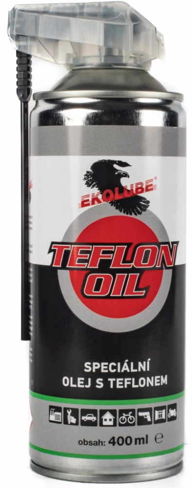 Olej Ekolube Teflon Oil je mazivo na bázi minerálního oleje s obsahem mazivostních přísad, inhibitorů koroze a pevných maziv (kombinace PTFE /Teflon/ a hBN / hexagonální nitrid bóru/ ). Má vynikající mazací, konzervační a hydrofobní vlastnosti. Dobře penetruje do úzkých prostor, vypuzuje vlhkost a vodu, čistí mazané plochy od usazenin a produktů degradace maziv. Tuhá maziva obsažená v oleji zabezpečují dobré vysokotlaké vlastnosti a výrazné snížení opotřebení třecích uzlů. Přednosti: · dokonalé snížení