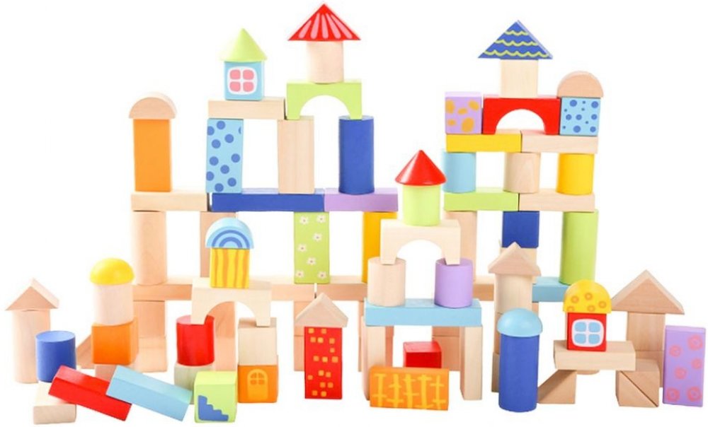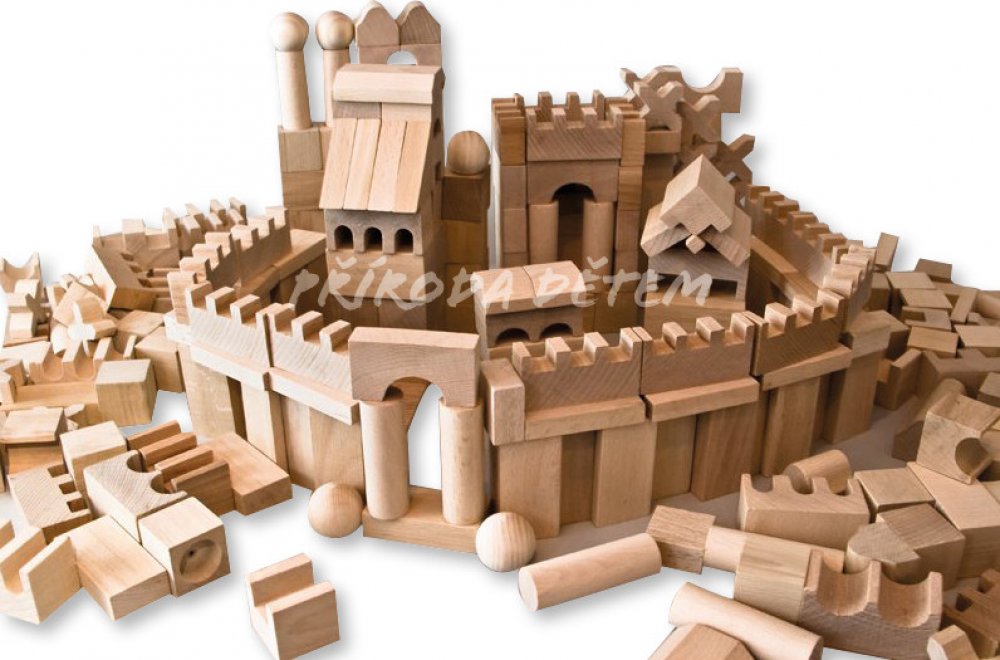 EkoToys Dřevěné kostky přírodní 220 ks XL