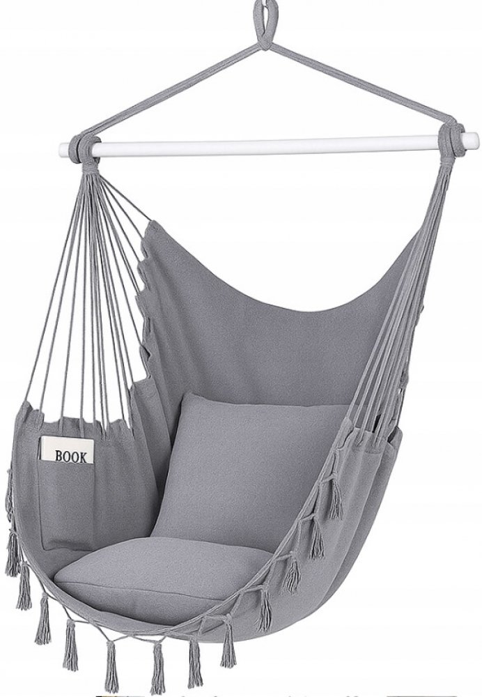 Stylový a pohodlný hamak v boho designu, ideální pro odpočinek doma i na zahradě. Díky lehké konstrukci a snadné montáži jej zavěsíte kdekoli – v obýváku, ložnici, na balkoně či terase.