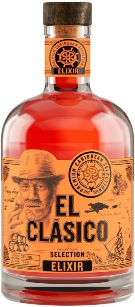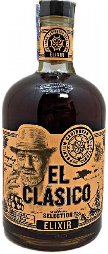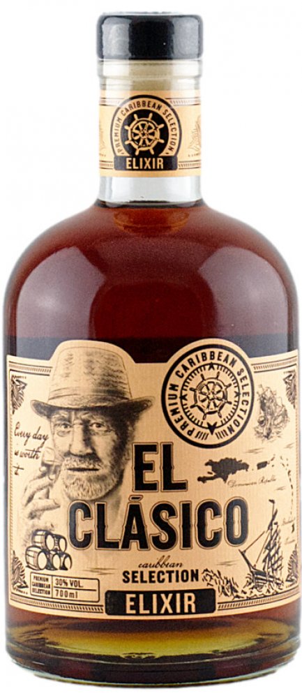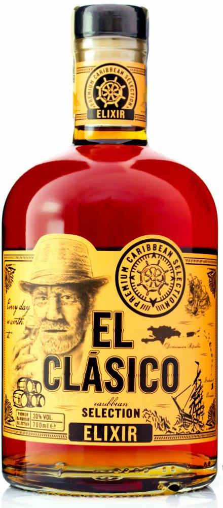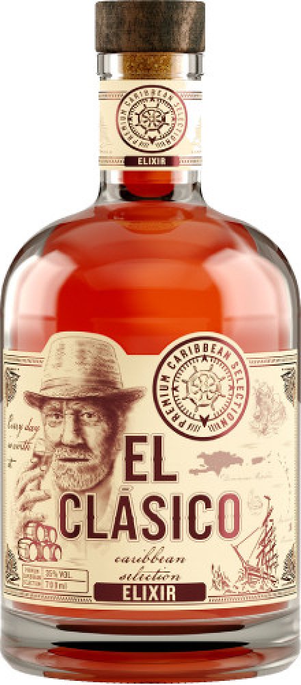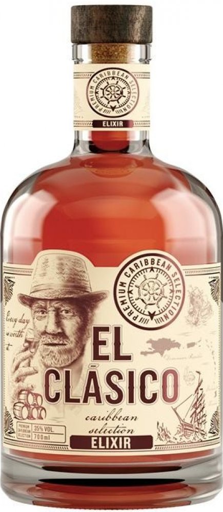 Prémiový výběr rumů z Karibiku, které z El Clásico Elixiru vytváří unikátní zážitek a povznáší tak práci mistrů destilatérů na další úroveň. Unikátně jemný, kořenitý a lehce nasládlý rumový blend obsahuje kvalitní rumy z Dominikánské republiky, Barbadosu a Trinidadu, které zrály v sudech po bourbonu. V chuti poznáte vanilku, skořici a kardamom, které dotváří unikátní vůni a chuť produktu. Odměňte se douškem Karibiku s El Clásico.