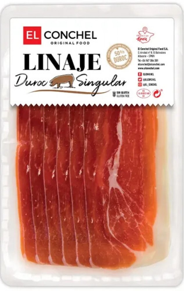 Prémiová španělská sušená šunka jamón z plemene Duroc, vyzrálá do podoby tzv. Gran Reserva. Díky pomalému tradičnímu zrání získává intenzivně červenou barvu, jemně slanou chuť a charakteristické aroma, které je typické pro vysoce kvalitní šunky. Tenoučké plátky podtrhují její delikátní strukturu a umožňují elegantní servírování.