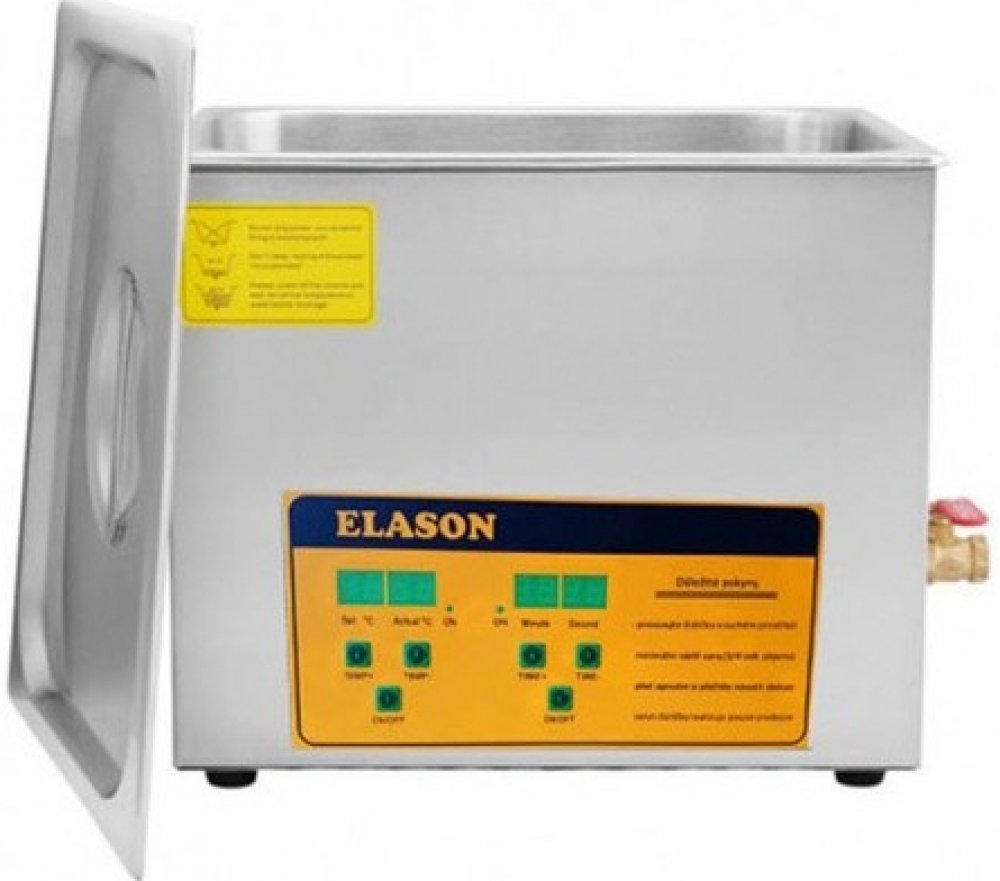 Digitální čistička ELASON disponuje rozměry vany 330 x 300 x 150 mm o objemu 15 litrů. Velmi jednoduché ovládání tlačítky s digitálním zobrazením nastavených hodnot (ohřev a čas čištění). Frekvence ultrazvuku je 40 kHz, výkon 360W, výkon s ohřevem 400W. Vana je vyrobena z kvalitní nerez oceli SUS304. Součástí balení je koš z nerezu a víko včetně vypouštěcího ventilu. Tlačítkové ovládání čističky s...