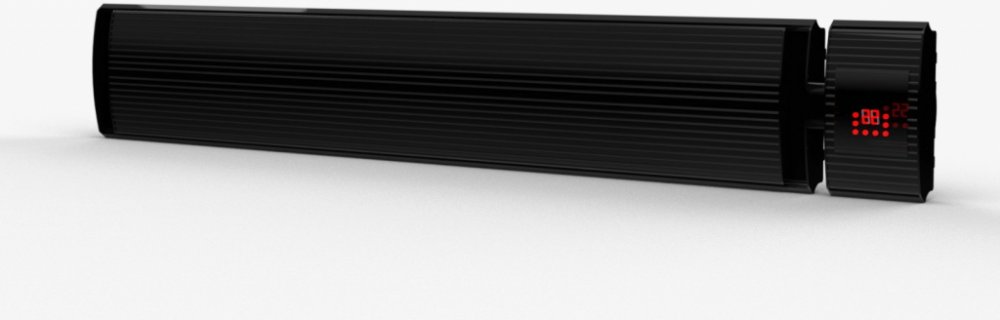 Designový infrazářič - příkon 2000 W, délka panelu 1000 mm, voděodolné (krytí IP 55), ohřev plochy až 12-20 m2, materiál nerezová ocel, barva černá, moderní design, použití (interiér, domov, kanceláře, terasy, altány, balkóny, koupelny), disponuje LONG WAVE technologií, ovládání manuální (zap/vyp), rozměry 1000 × 190 mm (Š×V), hmotnost 6,2 kg Unikátní "LONG WAVE" technologie