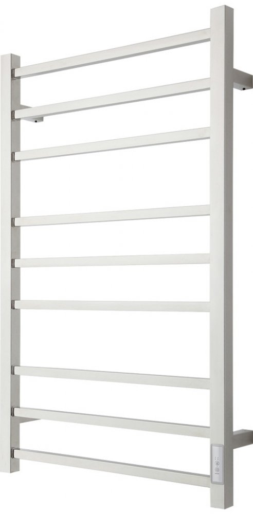 Elektrický koupelnový radiátor Eldo 9 o rozměrech 530 × 860 mm je ideální pro vytápění koupelny a sušení ručníků. Má moderní design v nerezovém provedení s 9 hranatými trubkami a dosahuje výkonu 100 W. Radiátor disponuje zabudovaným termostatem, který udržuje teplotu mezi 45 a 55 °C, a integrovaným časovačem pro nastavení doby chodu a podporu úspory energie.