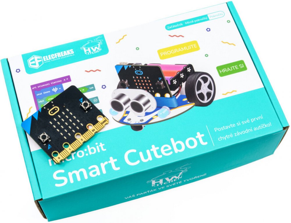 Smart Cutebot vás doslova vtáhne do hravé výuky programování microbit a zvláště pak, pokud jste hračičkové a rádi si zazávodíte! I přes svou malou velikost je Cutebot zábavné a výkonné robotické vozítko, které vás překvapí svou rychlostí a schopnostmi. Neumí jen jezdit po čáře nebo se vyhýbat překážkám – zvládne i další zajímavé kousky, takže se s ním leccos naučíte...