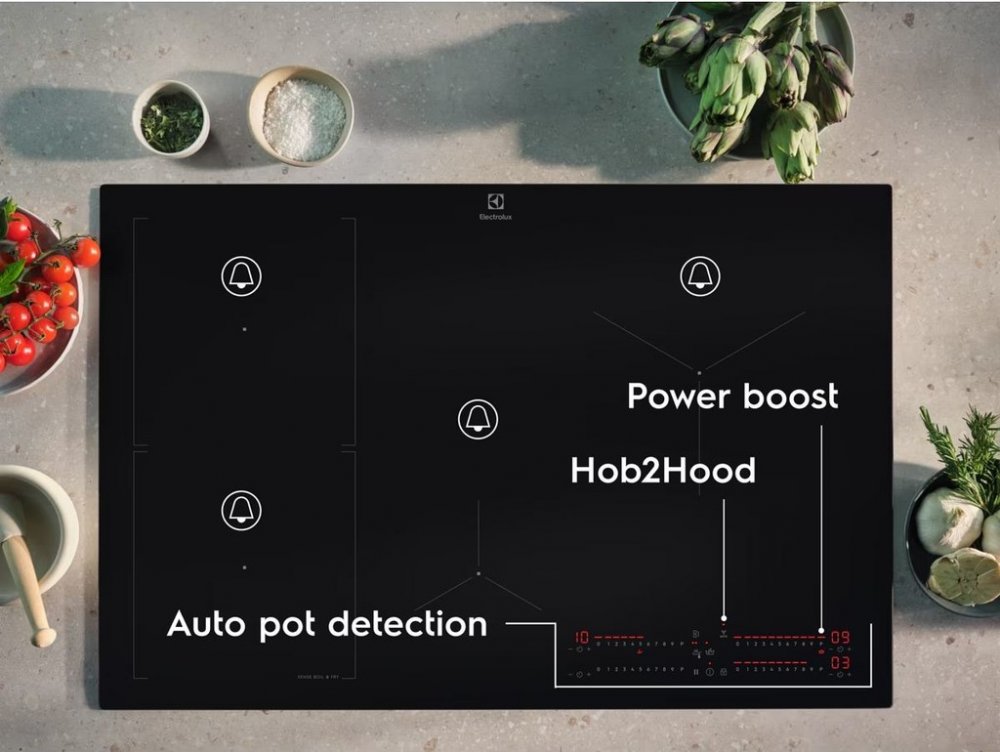 Hob2Hood: Automatické propojení s odsavačem par – varná deska může ovládat kompatibilní odsavač a přizpůsobovat jeho výkon průběhu vaření.