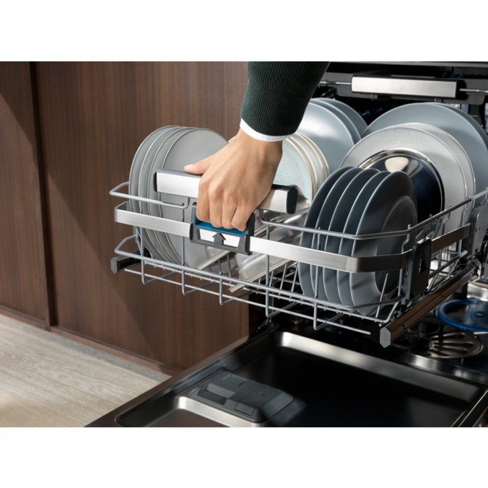 Myčka nádobí 800 ComfortLift® je první na světě, která usnadňuje vkládání i vyndávání nádobí. Naše jedinečná technologie umožňuje zdvihnout koš lehkým stisknutím držadla do úrovně pasu. Je to tak pohodlné, že už nikdy nebudete chtít nic jiného.