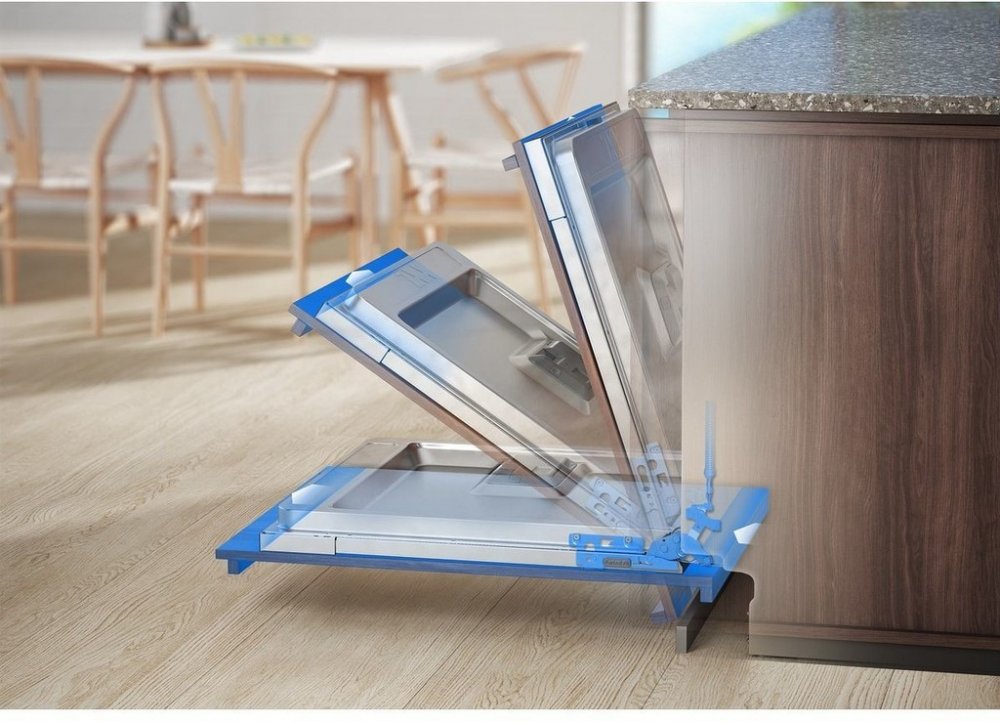 Zásuvka MaxiFlex je navržena tak, aby vyhovovala příborům a náčiní různých tvarů a velikostí. Ať už jsou velké nebo nevhodně tvarované, přizpůsobitelné přepážky a hluboká zásuvka znamenají, že vše lze snadno vložit.