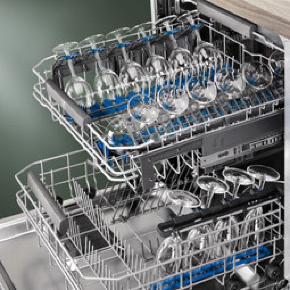 V myčce nádobí 700 GlassCare jsou vaše sklenice v bezpečí a nablýskané. Naše jedinečné úchyty SoftGrips a SoftSpikes drží sklenice šetrně a pevně na svém místě. Najdete je v horním i dolním koši, kam se pohodlně vejdou i sklenice na vysoké noze.