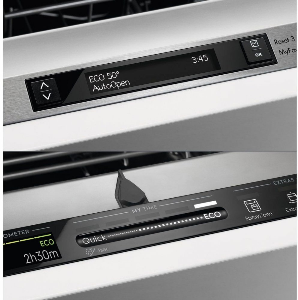 Další indikátory: budík, zpožděný start 1-24h, fáze sušení, GlassCare, Machine Care, vybraný program, indikátor pro leštidlo, sůl, Time beam White, XtraPower - extra silný