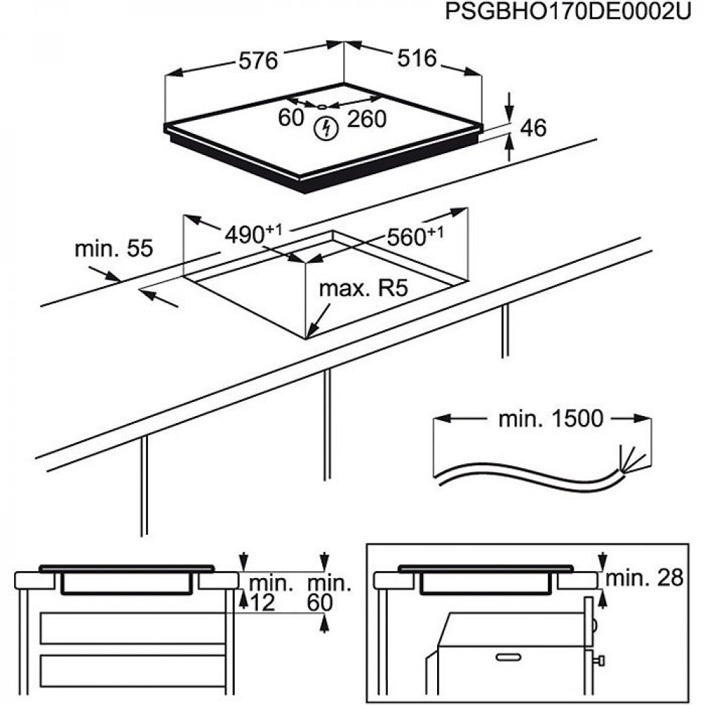 Electrolux sklokeramické 11.88 kg 4 indukční dotykové nerez černá 7200 W 220 - 240 V 50 / 60 Hz 5.5 x 57.6 x 51.6 cm 57.6 cm 51.6 cm 1.5 m