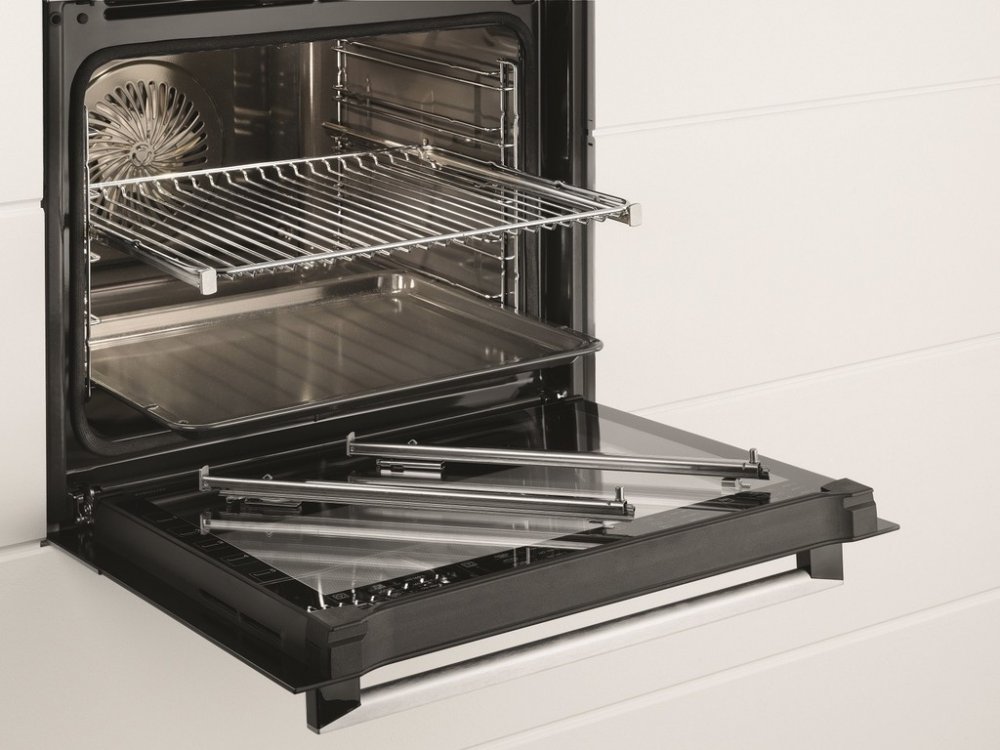 Energeticky úsporná vestavná trouba Electrolux EOB3450AAX s velmi jednoduchým ovládáním a LED displejem vás oslní svou 74 litrovou kapacitou, XL plechem a až devíti polohami pro rošty. Extra velký ventilátor a speciální vedení vzduchu vám zaručí, že se vše bude připravovat rovnoměrně. Zajisté oceníte i tlumené dovírání dvířek trouby.