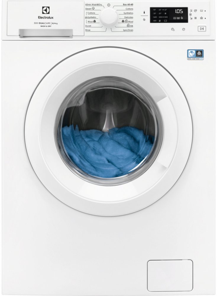 Náš systém DualCare® automaticky upravuje programy podle typu tkaniny. Péče o prádlo díky tomu probíhá při nejvhodnější teplotě a s optimalizovaným pohybem bubnu. Praní následované sušením v jednom jednoduchém procesu pro vybrané programy, včetně bavlny, syntetických materiálů a vlny.