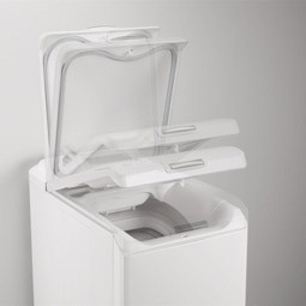 - S pomocí systému Soft Opening prádlo snadno vložíte i vyndáte. Díky tlačítkovému víku a měkkým dvířkům vnitřního bubnu je přístup jednoduchý a bezpečný. A protože otvor je nahoře, můžete jasně vidět jeho obsah.