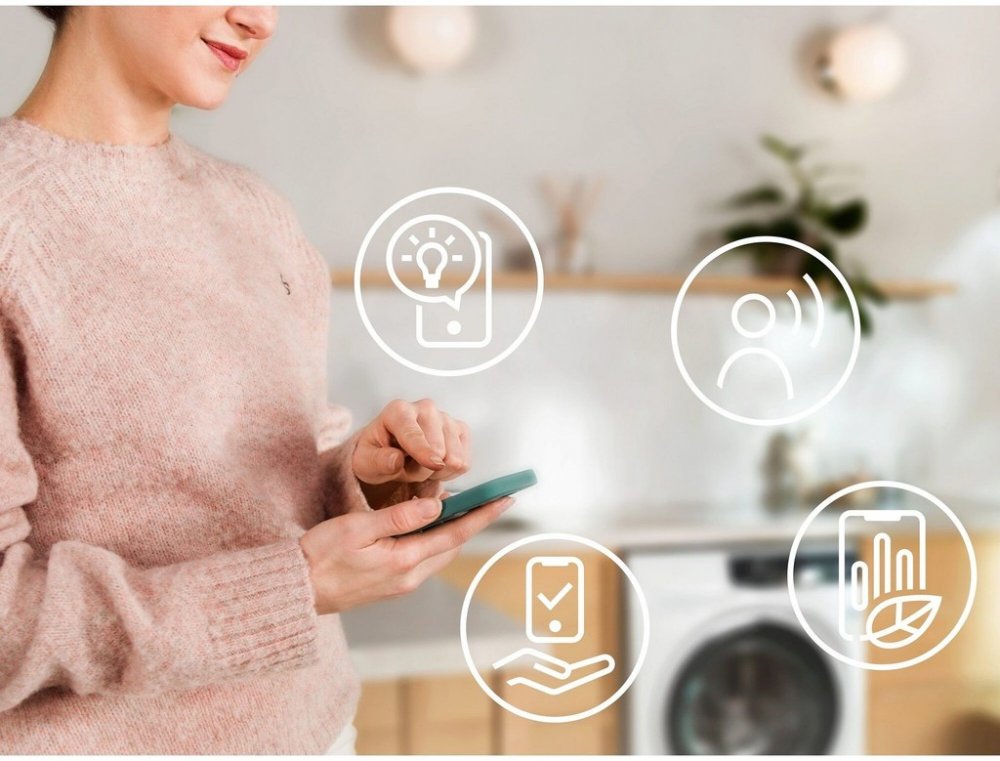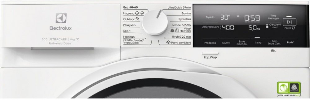 Další funkce: UniversalDose zásuvka, parní programy, rychlý program UltraQuick 59 min, odložený start, funkce TimeManager, Wi-Fi připojení