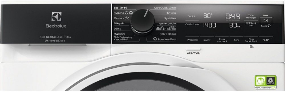 Pračka 800 UltraCare zaručeně vypere každé vlákno vašeho oblečení. Díky předmíchání a rovnoměrnému rozdělení pracího prostředku a aviváže dosahuje velmi účinného praní při nízké teplotě a krátkém cyklu.