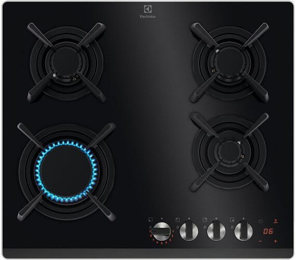 Electrolux sklokeramické 13.7 kg 4 plynové mechanické 9 litina černá 3800 W 220 - 240 V A 4 x 56 x 48 cm 60 cm 48 cm 1.1 m