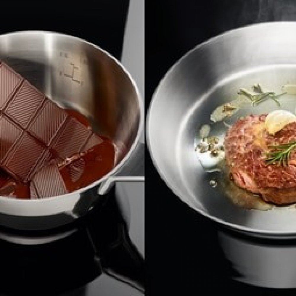 Na indukční varné desce Infinite® se varné zóny přizpůsobí tvaru vašeho nádobí. Automatické rozpoznání velikosti zajistí rovnoměrný ohřev po celé ploše dna. Můžete tak používat řadu různých hrnců a pánví.